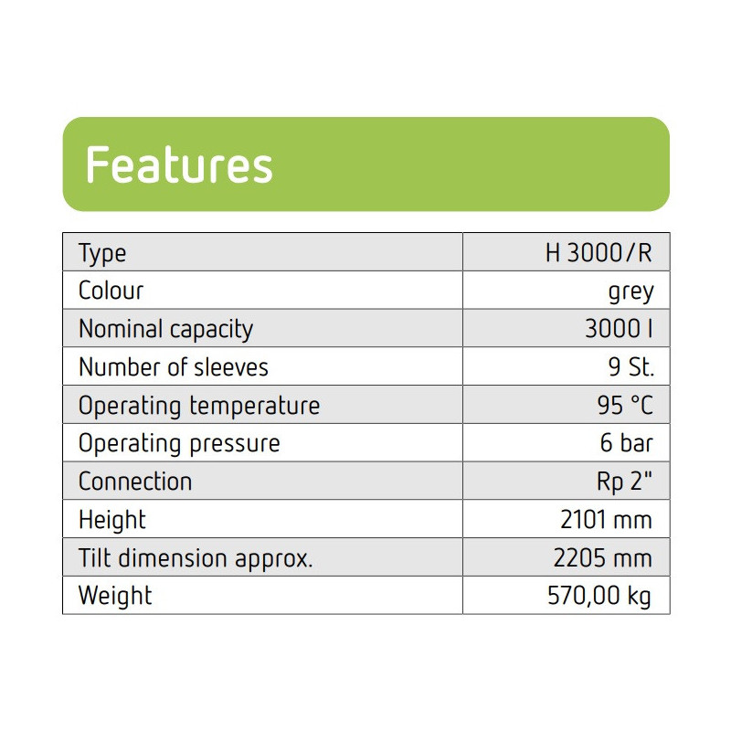 Akumuliacinė talpa Reflex PHF 3000 yra naudojama su šildymo ir vėsinimo sistemomis. Šių talpų paskirtis yra sukaupti šilumos energijos pertekliu savyje, o esant reikalui atiduoti į šiluminę trasą. Akumuliacinė talpa Reflex PHF 3000 padeda katilui dirbti nominaliu režimų net tada, kai katilo galingumas yra didesnis nei jo reikia patalpai apšildyti. Reflex akumuliacinės talpos pagalba kuras sudeginamas ekonomiškiau, o jos pajungimas itin paprastas. Akumuliacinės talpos parinkimas priklauso nuo daugelio aspektų, o pats svarbiausias - pačiam vartotojui išsiaiškinti, kuri jam būtų naudingiausia. Reflex PHF 3000 akumuliacinei talpai suteikiama 2 metų garantija.
