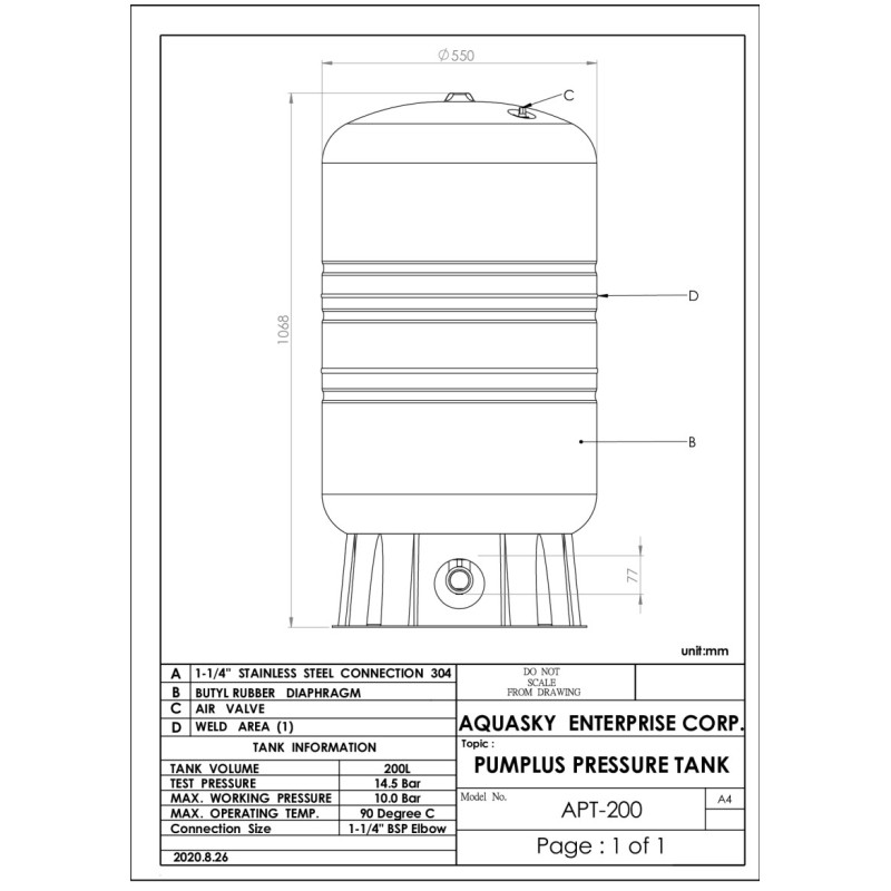 Hidroforas diafragminis AQUASKY Plus APT 200 V