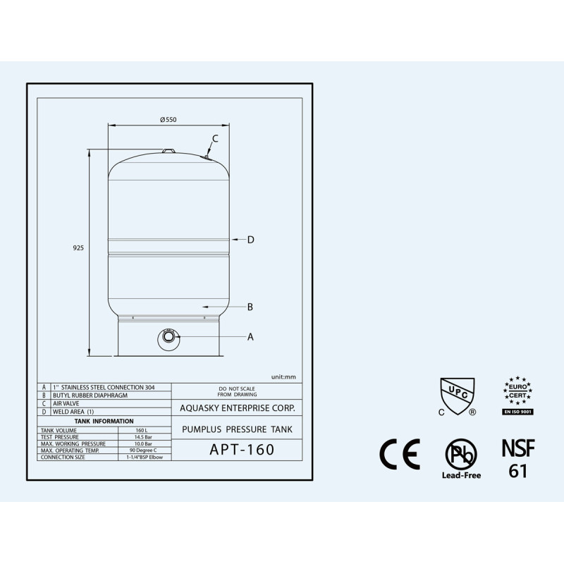 Hidroforas diafragminis AQUASKY Plus APT 160 V