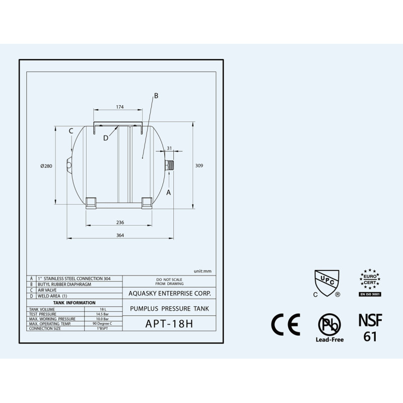 Hidroforas diafragminis AQUASKY Plus APT 18 H