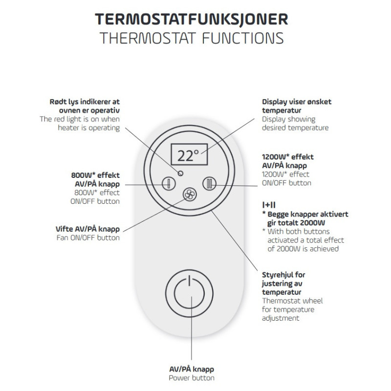 Nešiojamas elektrinis šildytuvas Adax Vilje VG11 20 DTF su itin tiksliu skaitmeniniu termostatu ir ekranu, juodos spalvos. Tai patogus ir daug vietos neužimantis nešiojamas šildytuvas, todėl tai puikus pasirinkimas, jeigu Jums reikia greitai ir efektyviai pašildyti mažas patalpas. Taip pat įrengta apsauga nuo apvirtimo ir perkaitimo, todėl šis įrenginys Jums tarnaus ilgiau negu įprastai. Šildytuvo galia gali būti reguliuojama - 800, 1200 arba 2000 W, tai leidžia pasirinkti tuo metu reikiamą šildymo galingumą. Adax Vilje VG11 20 DTF sumontuoti šilumos skydai, kurie yra apatinėje dalyje. Komplektuojamas su laidu ir kištuku į rozetę. Suteikiama 5 metų garantija.