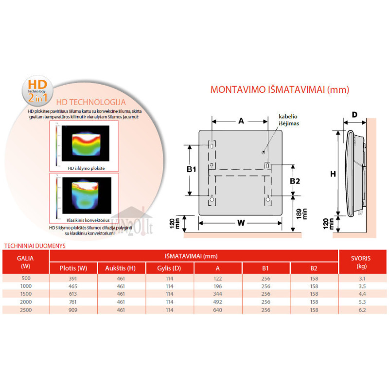 | Tipas | Elektrinis konvektorius |