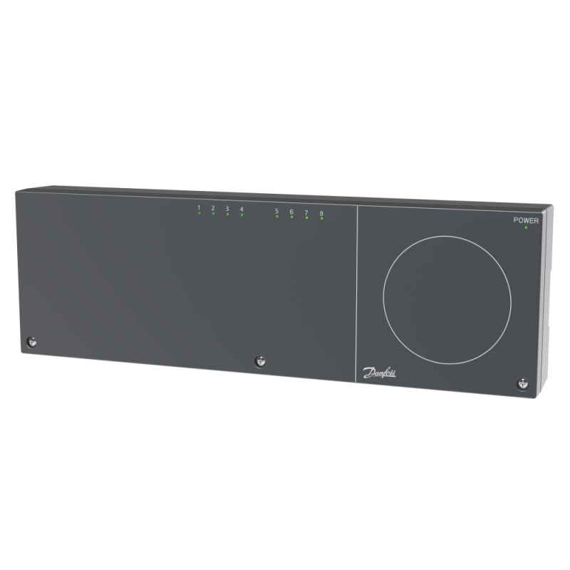 Grindinio šildymo valdiklis Danfoss. Valdiklis 8 zonų, galima jungti iki 14 pavarų (230V).