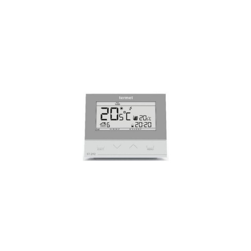 Patalpos termostatas Termet ST-292 V3, su laidu, programuojamas savaitei. Termostatas turi ryškų LCD ekraną ir yra paprastai tvirtinamas – visa tai užtikrina lengvą jo montavimą ir valdymą. Temperatūros reguliavimo ribos 5 - 35°C, yra 6 nustatytos programos + 3 laisvai programuojamos. Patalpos termostatas Termet ST-292 V3, maitinamas 2xAA baterijomis.