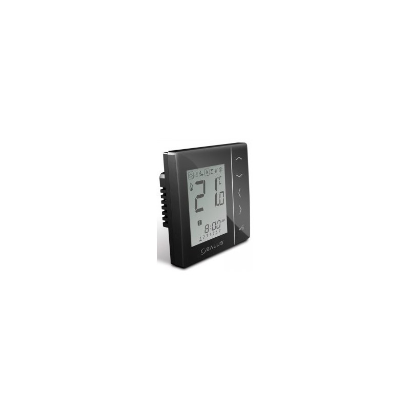 Patalpos termostatas Salus VS30B, programuojamas, skaitmeninis, su laidu, juodas. Termostatas turi ryškų ekraną ir yra paprastai valdomas, potinkinio montavimo. Yra 6 programos - gamyklinės ir individualus programavimas, integruota antiužšalimo funkcija. Išorinio temperatūros daviklio prijungimo galimybė, šildymo/vėsinimo režimai. Temperatūros reguliavimo ribos 5 - 35°C. Patalpos termostatas Salus VS30B, maitinamas iš tinklo (230V).