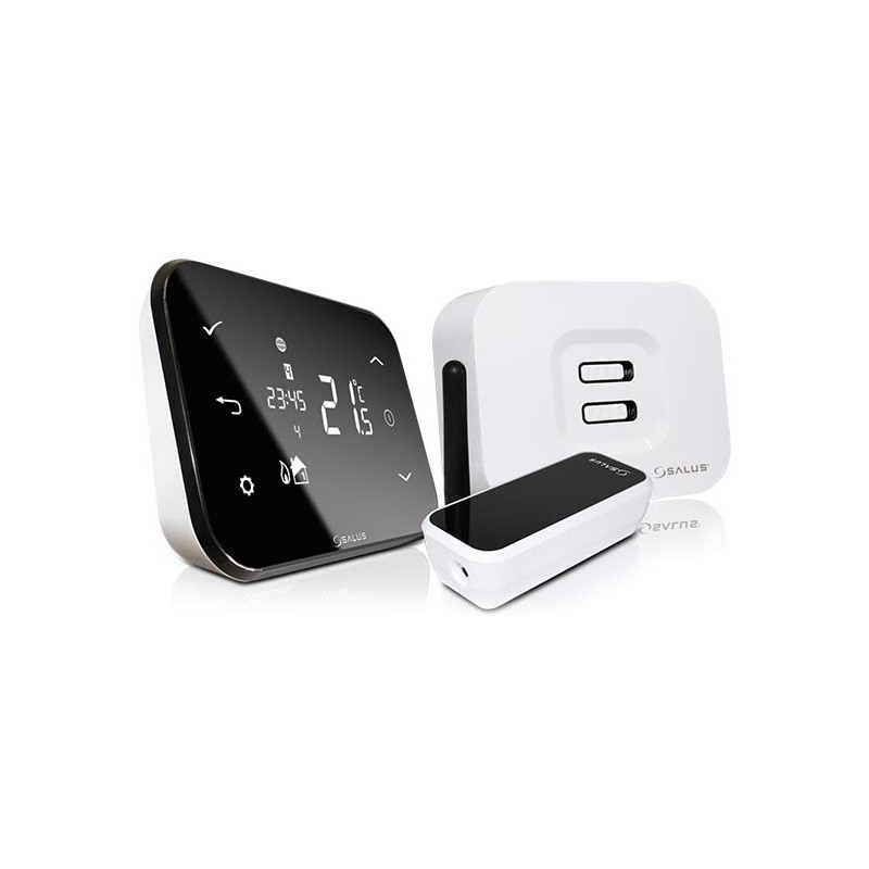 Internetinis programuojamas patalpos termostatas Salus IT500. Termostatas skirtai vienai šildymo zonai, tačiau yra galimybė praplėsti iki 2 naudojant Salus IT300 daviklį (šildymas+karštas vanduo). Valdomas su išmaniuoju įrenginiu ir liečiamu ekranu. Temperatūros reguliavimo ribos - 5 - 35°C, integruota antiužšalimo funkcija. Termostato Salus IT500 matmenys - 150x100x35mm. Suteikiama 4 metų garantija.