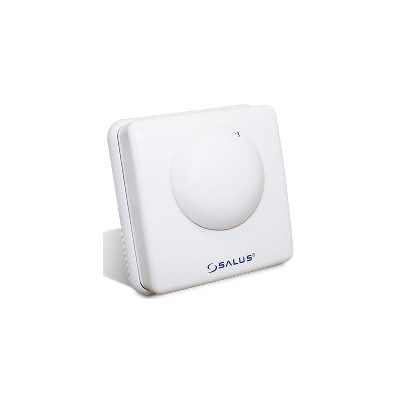 Patalpos termostatas Salus RT100, 10-30°C, mechaninis. Termostatas yra paprastai tvirtinamas prie sienos ir valdomas sukant rankenėlę link norimos temperatūros. Temperatūros reguliavimo ribos 10 - 30°C. Patalpos termostatas Salus RT100 komutuoja be įtampinius ON/OFF kontaktus, maitinamas iš tinklo (230V). Suteikiama 2 metų garantija.