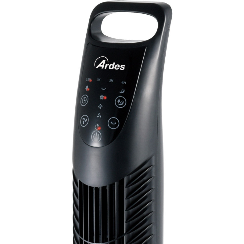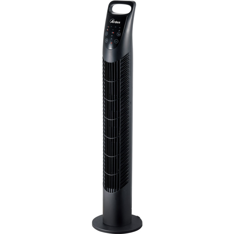 Pastatomas ventiliatorius Ardes Tower Stilo RC, 80cm, juodos spalvos. Ventiliatorius puikiai tiks prie kiekvieno kambario interjero. Ventiliatorius Ardes Tower Stilo RC 80cm, turi 3 greičio lygius, automatinio sukiojimosi funkciją, valdomas per liečiamą ekraną, su nuotolinio valdymo ir laikmačio funkcijomis. Taip pat, integruotos natūralaus vėjo ir miego funkcijos. Maksimalus oro srautas - 22.2m3/min. Suteikiama 2 metų garantija.