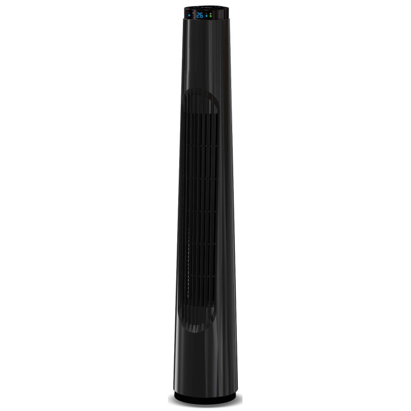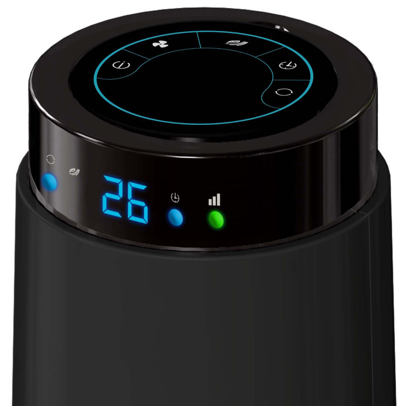 Pastatomas ventiliatorius, Juodos spalvos, 85cm aukštis, 3 greičio lygių, Skaitmeninis valdymas su liečiamu ekranu, Automatinis sukiojimasis, Ekranas temperatūrai, Maksimalus oro srautas - 21.0m3/min, Galia 40W, Natūralaus vėjo funkcija