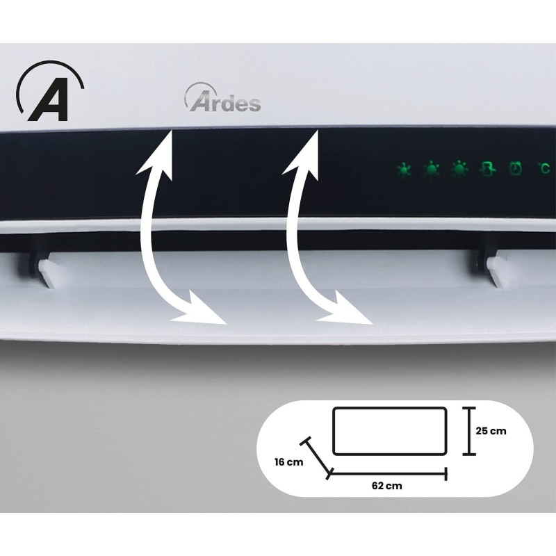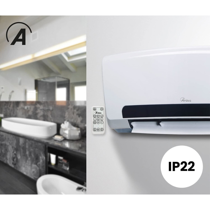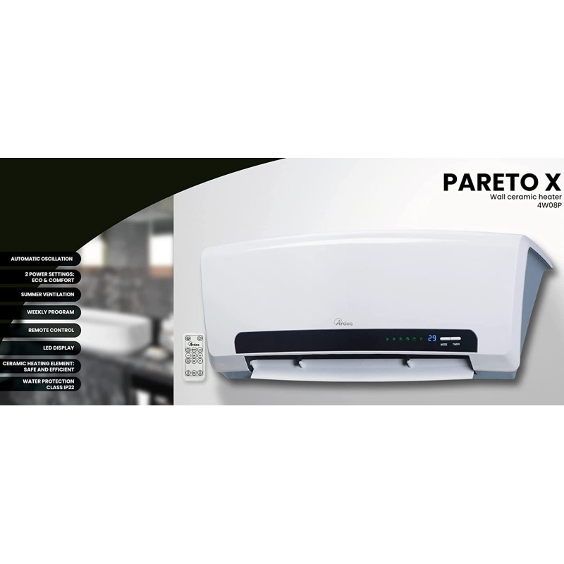 Sieninis oro šildytuvas Ardes Pareto X 2000W. Oro šildytuvas Ardes Pareto X - puikus pasirinkimas norintiems šildytis ekonomiškai bei jaustis komfortiškai. Vasarą toks šildytuvas veikia kaip ventiliatorius, tad nereikia pirkti papildomo ventiliatoriaus vėsinimui. Eco&Comfort galios pasirinkimai leis patiems reguliuoti šildytuvo galią. Ardes Pareto X sieninis šildytuvas yra programuojamas, su laikmačiu bei valdomas su nuotoliniu pultu, todėl valdomas itin patogiai ir paprastai. Taip pat, integruotas skaitmeninis ekranas bei apsauga nuo vandens purslų ir perkaitimo. Suteikiama 2 metų garantija.
