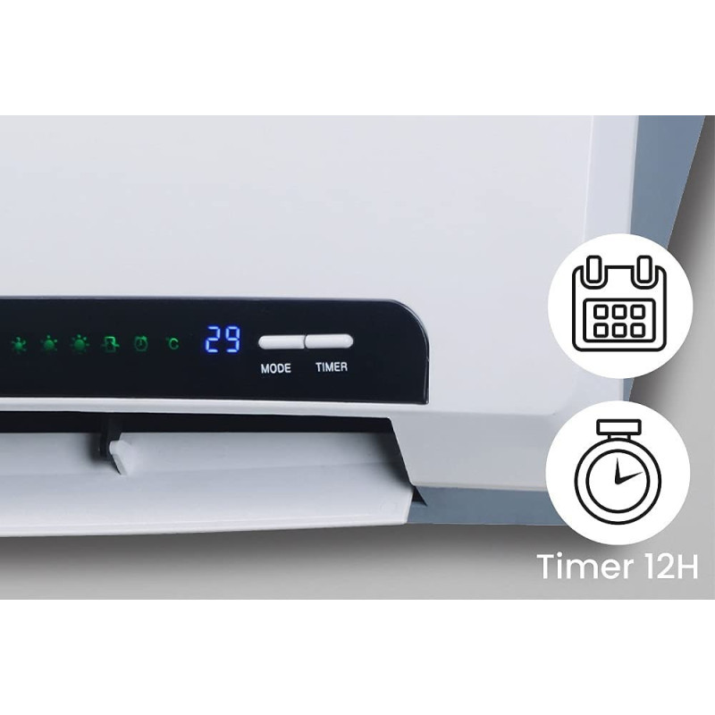 Sieninis oro šildytuvas tinkamas patalpoms iki 60m3, Vasarą veikia kaip ventiliatorius, Eco&Comfort galios pasirinkimai, Nuotolinis pultas, Programuojamas, Skaitmeninis ekranas, Apsauga nuo vandens purslų ir perkaitimo, Automatinis oro srauto osciliavimas