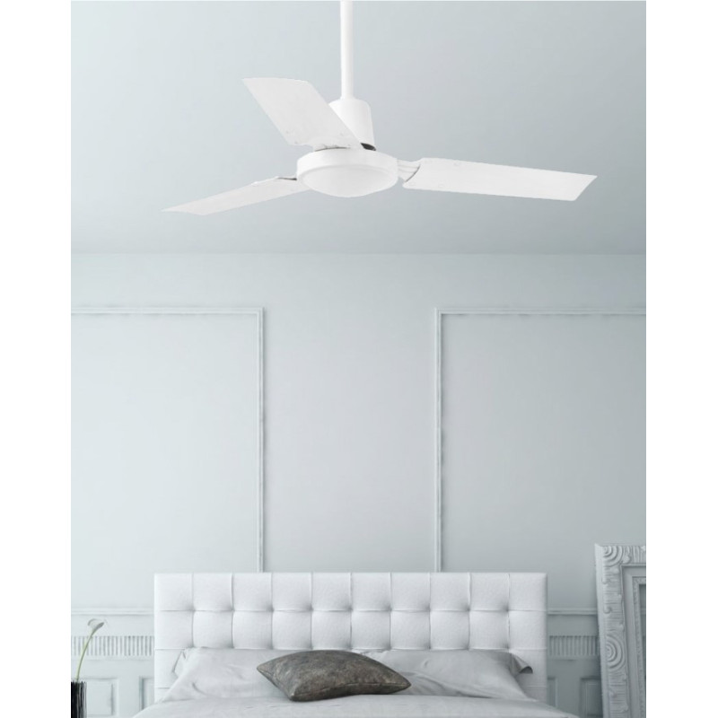 Lubų ventiliatorius, Plieninis variklis su plieninėmis geležtėmis, Baltos spalvos, 92 cm skersmens, 3 ašmenys, 5 greičio lygių, Galia 10/13/17/22/43 W, Sieninis valdymas