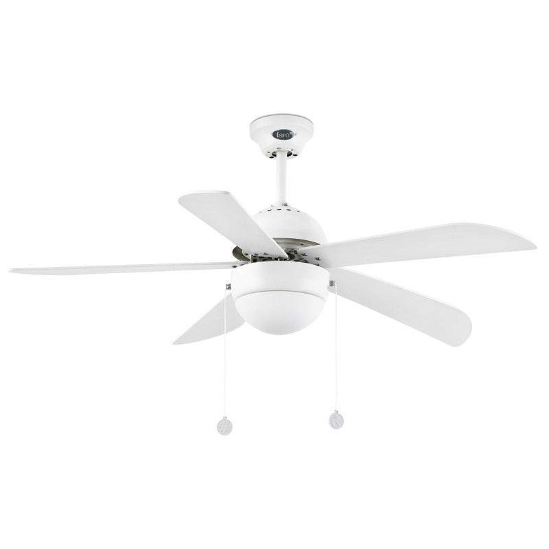 Lubų ventiliatorius Faro Veneto, su šviestuvu, baltos spalvos. Ventiliatorius su 5 mediniais apverčiamais ašmenimis puikiai tiks prie kiekvieno kambario interjero. Ventiliatorius Faro Veneto turi 3 greičio lygius - 84/134/201 apsisukimų per min., valdomas rankiniu būdu, integruota žiemos/vasaros funkcija, kuri padeda šildymo sistemai. Ventiliatoriaus variklis iš plieno, todėl tarnaus ilgą laiką. Ventiliatorius Faro Veneto rekomenduojamas patalpoms nuo 17.6 m2. Šviestuve naudojamos lemputės - max. 3x60W E27, perkamos atskirai. Suteikiama 2 metų garantija.