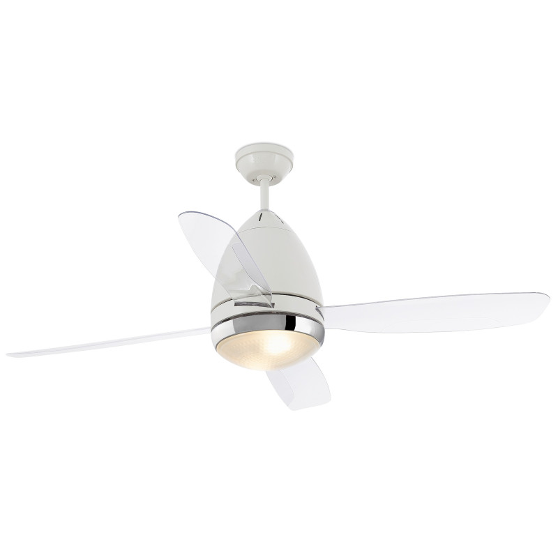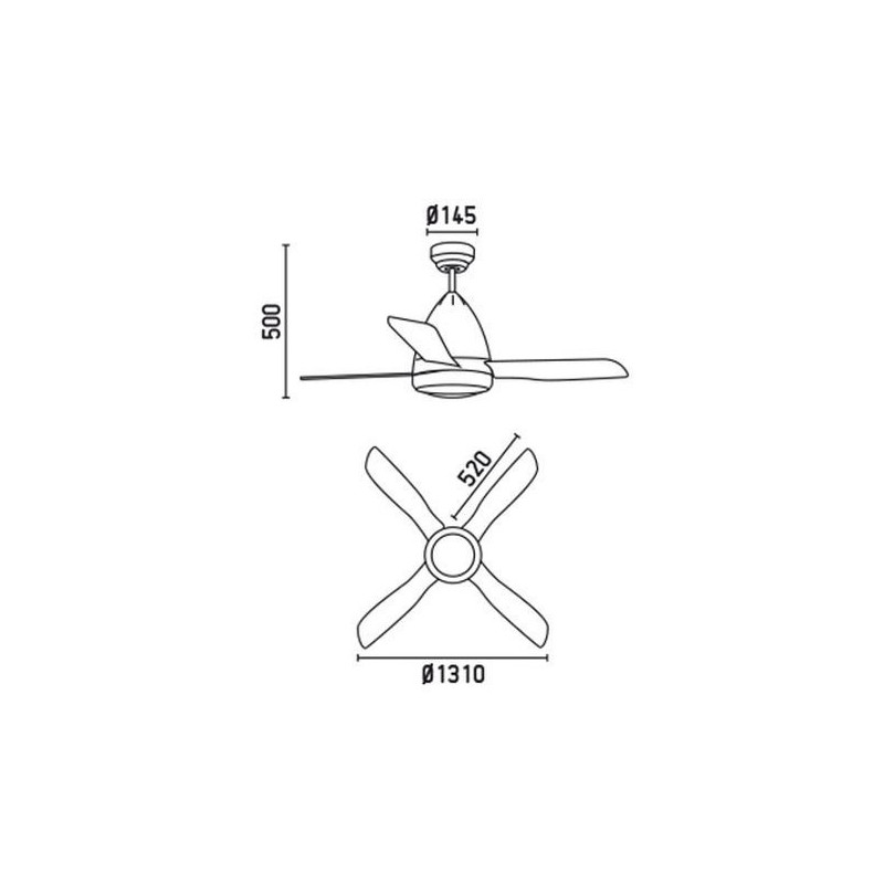 Lubų ventiliatorius, Su šviestuvu, Plieninis variklis su plastiko geležtėmis, Baltos spalvos, 131 cm skersmens, 4 ašmenys, 3 greičio lygių, Galia 14/25/57 W, Valdymo pultas, Žiemos/vasaros funkcija, Lemputės - max. 2x15W E27 (perkama atskirai)