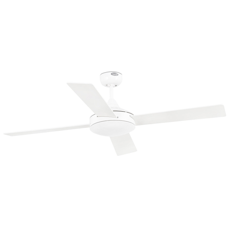 Lubų ventiliatorius Faro Mallorca, be šviestuvo, įvairių spalvų. Ventiliatorius su 4 mediniais apverčiamais ašmenimis puikiai tiks prie kiekvieno kambario interjero. Ventiliatorius Faro Mallorca turi 3 greičio lygius - 100/152/203 apsisukimų per min., valdomas nuotoliniu būdu, integruota žiemos/vasaros funkcija, kuri padeda šildymo sistemai. Ventiliatoriaus variklis iš plieno, todėl tarnaus ilgą laiką. Ventiliatorius Faro Mallorca rekomenduojamas patalpoms nuo 17.6 m2. Suteikiama 2 metų garantija.