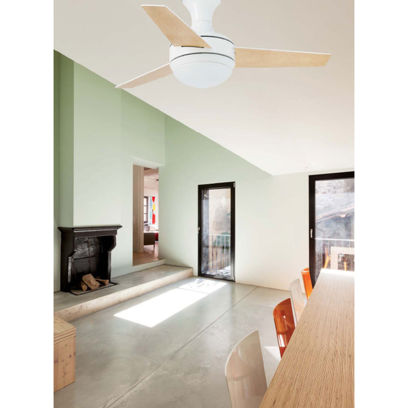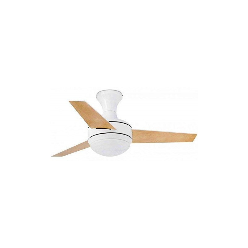 Lubų ventiliatorius, Su šviestuvu, Plieninis variklis su medinėmis geležtėmis, Baltos spalvos, 104 cm skersmens, 3 ašmenys, 3 greičio lygių, Galia 8/18/42 W, Nuotolinis valdymas, Žiemos/vasaros funkcija, Lemputės - max. 2x20W E27