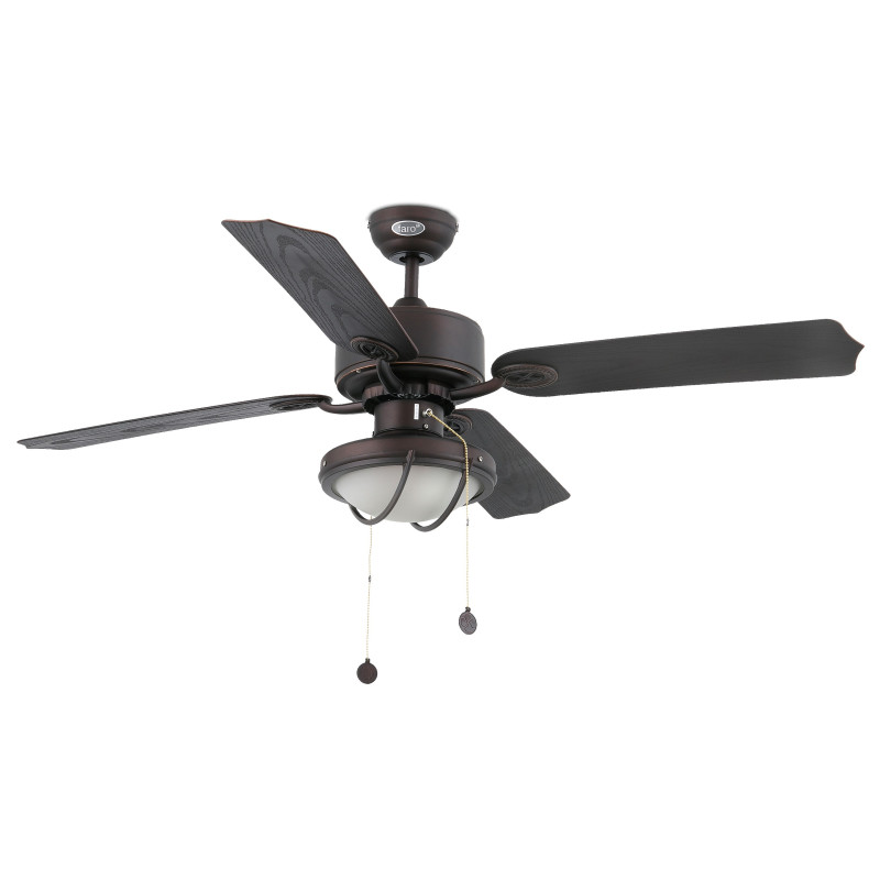 Lubų ventiliatorius, Su šviestuvu, Plieninis variklis su medinėmis geležtėmis, Tamsiai rudos spalvos, 132 cm skersmens, 4 ašmenys, 3 greičio lygių, Galia 14/27/56 W, Rankinis valdymas, Žiemos/vasaros funkcija, Lemputės - max. 2x60W E27
