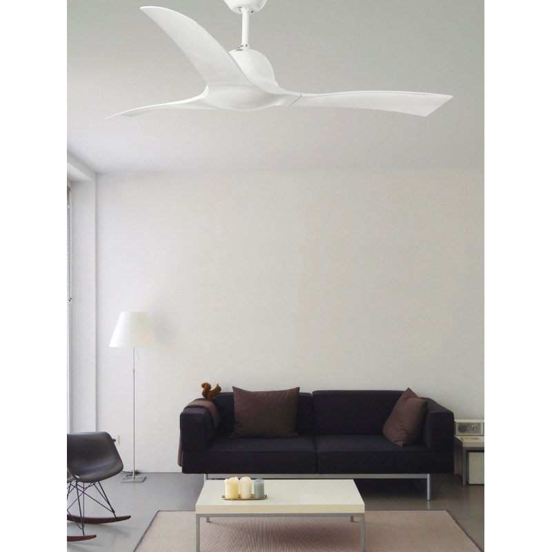 Lubų ventiliatorius, Be šviestuvo, Plieninis variklis su plastiko geležtėmis, Baltos spalvos, 132 cm skersmens, 3 ašmenys, 3 greičio lygių, Galia 18/32/50 W, Nuotolinis valdymas, Žiemos/vasaros funkcija