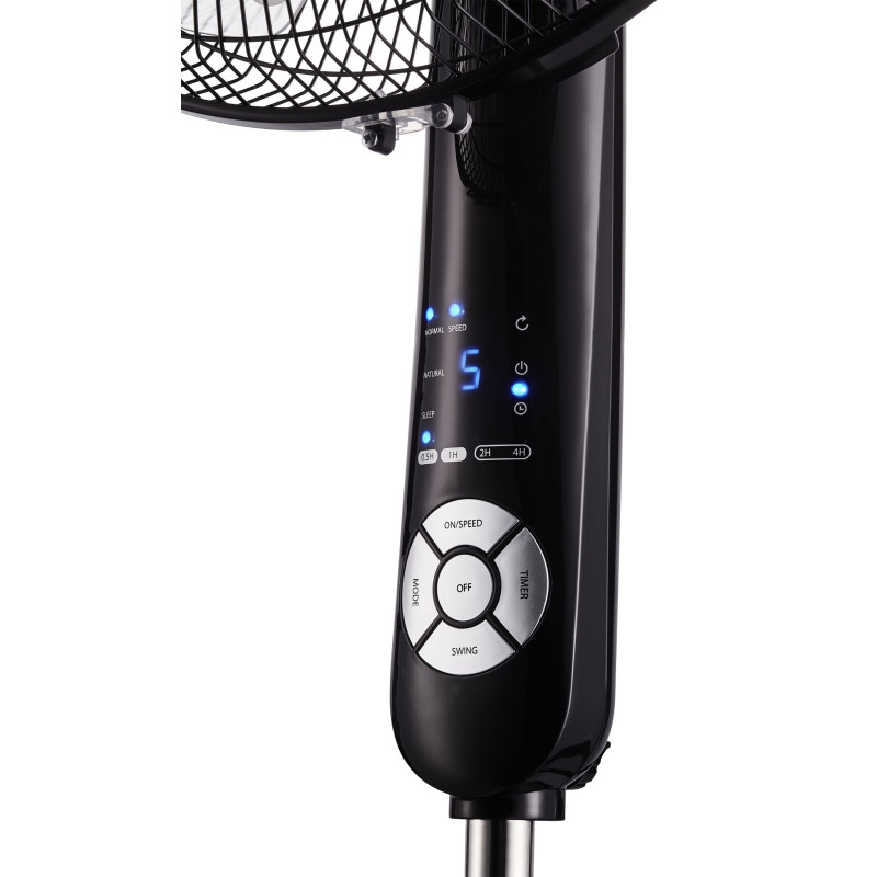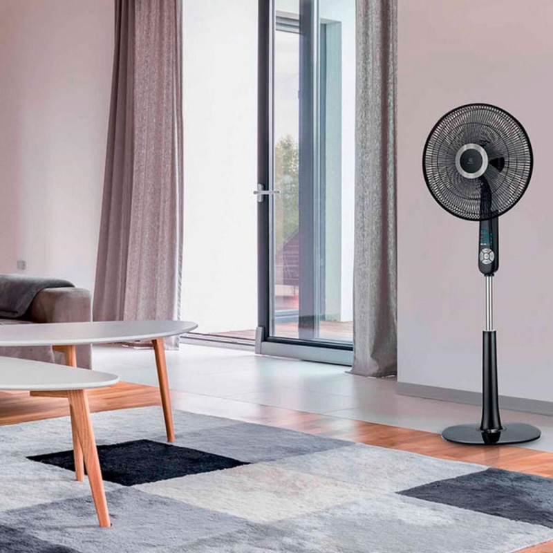 Pastatomas ventiliatorius Electrolux EFF1004i, su stovu, juodos spalvos su chromuotais elementais. Ventiliatorius su stabiliu naujo dizaino kvadratiniu stovu, todėl puikiai tiks prie kiekvieno kambario interjero, o sustiprintas tinklelis apsaugos nuo besisukančių ašmenų. Pailgintas ventiliatoriaus variklio tarnavimo laikas, todėl įrenginys tarnaus ilgą laiką. Ventiliatorius Electrolux EFF1004i turi valdymo panelę su LED ekranu, 3 režimus, 6 ventiliatoriaus greičio lygius, laikmatį (0.5 - 7.5 val.), nuotolinio valdymo galimybę su pultu ir automatinio sukiojimosi funkciją. Maksimalus oro srautas - 3000 m3/val. Suteikiama 2 metų garantija.