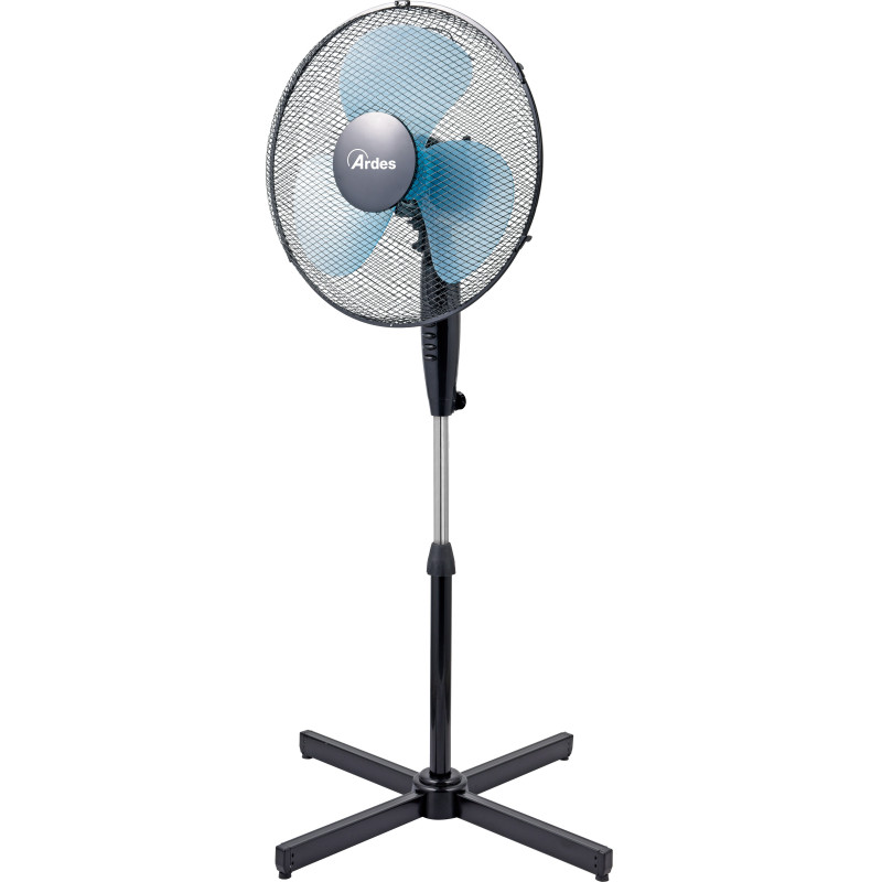 Pastatomas ventiliatorius Ardes Easy Line 40cm, su stovu, juodos spalvos. Ventiliatorius su pusiau permatomais spalvotais ašmenimis, puikiai tiks prie kiekvieno kambario interjero, o tinklelis apsaugos nuo besisukančių ašmenų. Ventiliatorius Ardes Easy Line 40cm, turi 3 greičio lygius ir automatinio sukiojimosi funkciją. Maksimalus oro srautas - 53.5m3/min. Suteikiama 2 metų garantija.