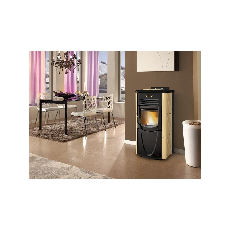 La Nordica Extraflame Graziosa Steel Plus - granulinė krosnelė su ortakiais. Krosnelės dizainas - šiuolaikiškas ir elegantiškas, tinkantis prie įvairaus interjero. Apdaila - dažytas plienas, kuris atlaiko aukščiausias temperatūras. Keramikinis stiklas gali atlaikyti iki 750 °C temperatūrą. Krosnelė valdoma nuotoliniu pultu. Nuolatinis temperatūros valdymas granulių talpoje ir pagrindinėje degimo kameroje, užtikrina jog krosnelė neperkais. Atsiradus kliūčių dūmų pašalinimui - krosnelė automatiškai išsijungia. Krosnelėje įmontuotas konvekcinis oro ventiliatorius bei galimybė užprogramuoti krosnelę savaitei. Šios granulinės krosnelės pasirinkimas pakeis jūsų buitį: namus apšildysite greitai ir patogiai, o nusprendę žiemą pakeliauti, galėsite nesibaiminti, kad jie liks šalti ar pradės kauptis pelėsis.