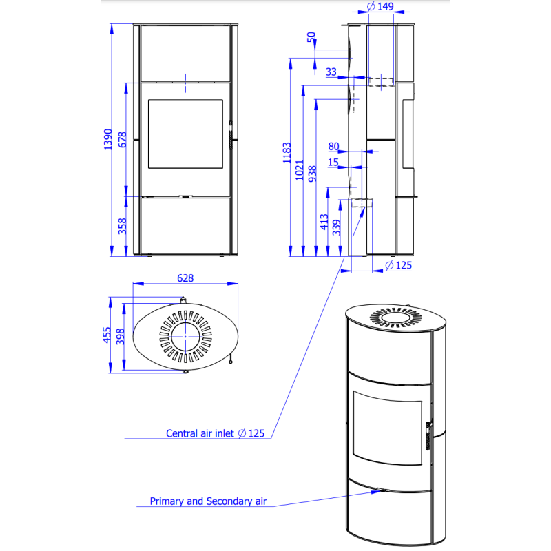 | Krosnelės tipas | Kieto kuro krosnelė |