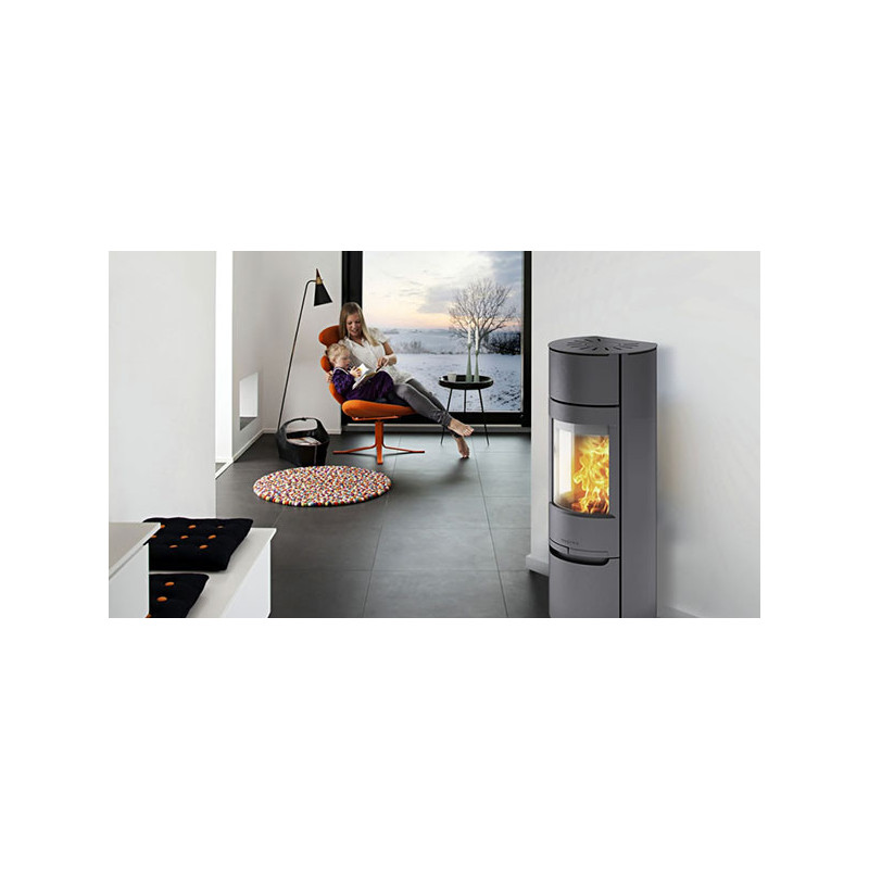Plieninė krosnelė Wiking Luma 6 yra šiuolaikinio dizaino, dėl to puikiai tiks prie įvairaus interjero. Degimo kamera išklota vermikulito plokštėmis, kurios greitai įkaista, o degimas tampa švarus ir efektyvus. Patikimas durelių uždarymo mechanizmas - uždarius dureles, fiksuojamieji kabliai pritraukia ir užfiksuoja dureles. Krosnelėse yra galimybė pajungti šviežio oro padavimą iš viršaus arba nugaros. Krosnelėje įmontuota išmani sklendė. Kai krosnelė ką tik užkurta ir dar nėra įšilusi, sklendė yra atvira ir leidžia orą į degimo kamerą. Kai krosnelė įšyla, sklendė išsiplečia ir nebeįleidžia oro, tuomet yra palaikomas efektyvus ir švarus degimas. Suteikiama 5 metų garantija.