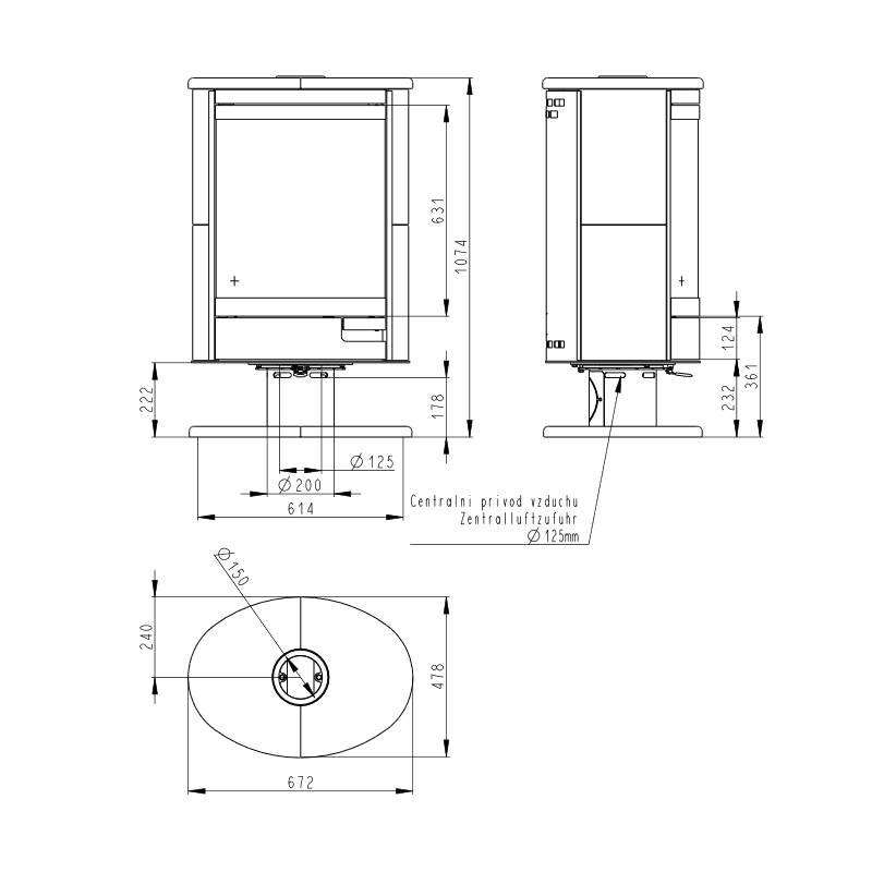 - Dūmtraukio skersmuo - 150mm