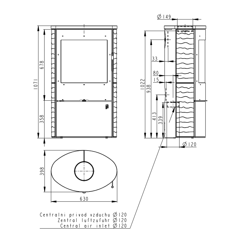 | Krosnelės tipas | Kieto kuro krosnelė |