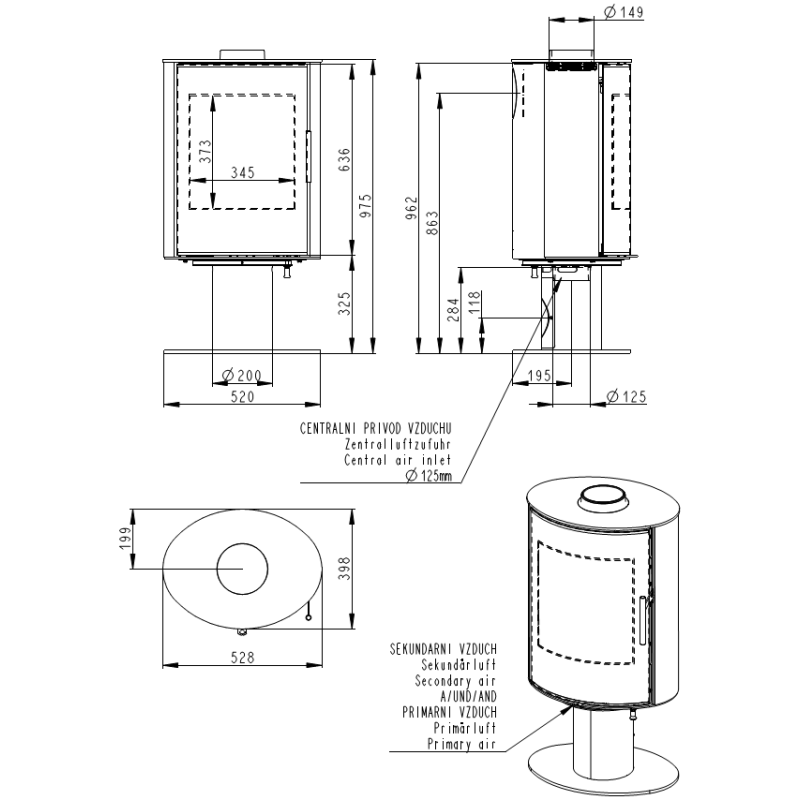 | Krosnelės tipas | Kieto kuro krosnelė |