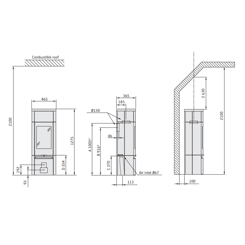 - Dūmtraukio skersmuo - 150 mm