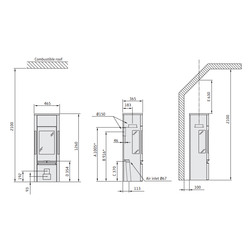 Plieninė krosnelė Nibe Contura C896G:3 Style, juoda, 3 - 7 kW