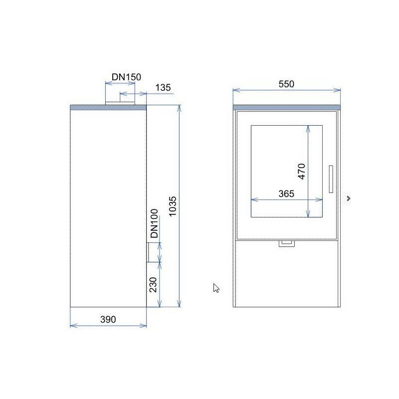 - Dūmtraukio skersmuo - 150 mm