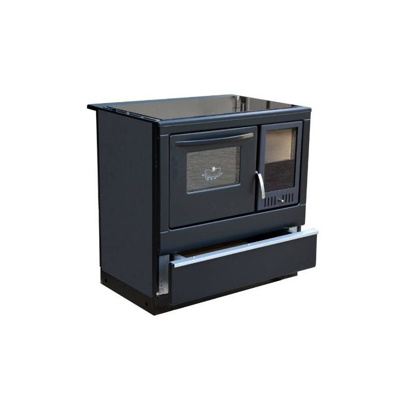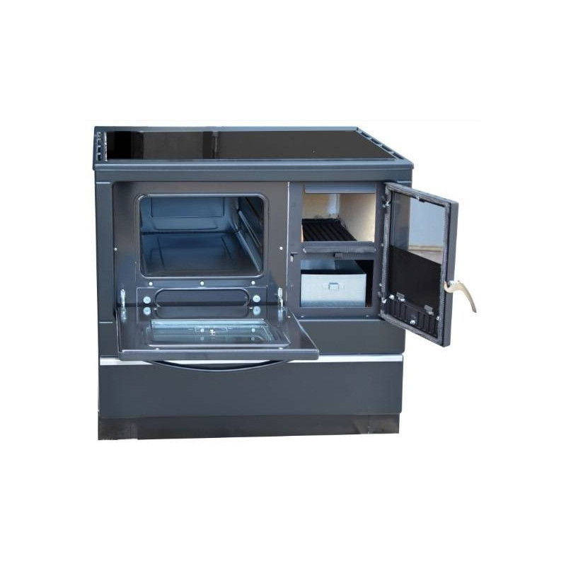 Plieninė kieto kuro krosnelė - viryklė Thorma Okonom 85/Fiko Excellent H, kairės pusės, juodos spalvos, stiklo keramika dengtu viršumi, su emaliuota apdaila, su orkaite ir kaitviete maistui ruošti. Pakuros durelės su stiklu. Orkaitė - dešinėje, degimo kamera - kairėje. Yra stalčius susidėti daiktams, 3.5 - 10.5 kW. Krosnelė – šiuolaikiško dizaino, užimanti nedaug vietos, todėl ją labai lengva priderinti prie bet kokio interjero. Krosnelė - ekonomiška, pasižyminti aukštu naudingumo koeficientu (76 %). Thorma Okonom 85/Fiko Excellent H krosnelė - labai lengvai montuojama, kas nereikalauja didelių pastangų pradedant naudoti įrenginį. Kieto kuro krosnelė daugeliui žmonių yra nepakeičiamas šildymo įrenginys, kuris ne tik skleidžia šilumą, bet ir sukuria jaukumą namuose. Krosnelės pakura dengta šamoto plytomis, taip ją apsaugant nuo tiesioginės ugnies. Pagrindinis kuras - mediena. Thorma Okonom 85/Fiko Excellent H krosnelės dūmtraukio pajungimas iš galo arba iš kairio šono. 5 metų garantija korpusui.