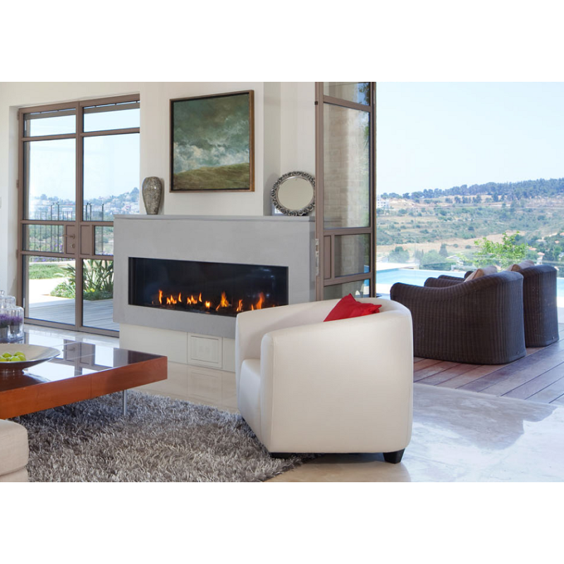 Dujinis židinys Akos Mercury XL, 12 kW, tiesiu stiklu, LPG