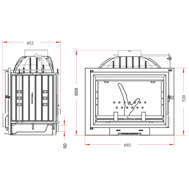| Židinio aukštis (bendras), mm | 659 |