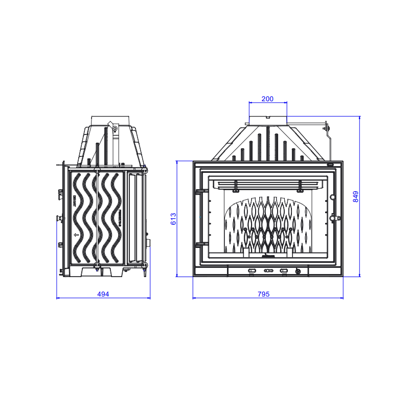 - Dūmtraukio skersmuo - 200 mm