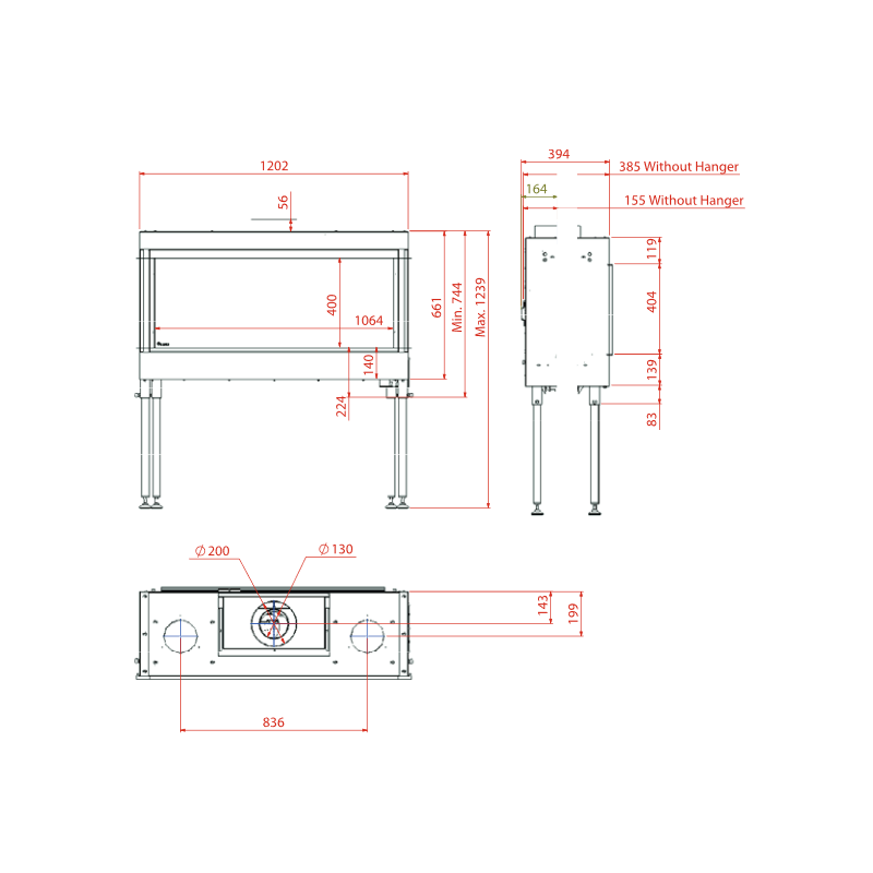 Dujinis židinys Akos Mercury L, į kaminą jungiamas 130/200 mm skersmens dūmtraukiu. Vidiniu dūmtraukio skersmeniu degimo produktai šalinami , o išoriniu - tiekiamas oras degimui palaikyti, todėl židinio patalpoje esantis oras išlieka šviežias. Suteikiama 10 metų garantija degikliui.