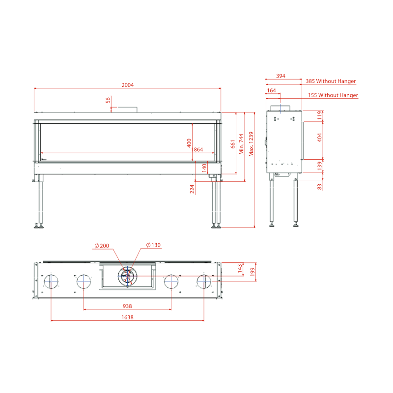 Dujinis židinys Akos Mercury XXL, į kaminą jungiamas 130/200 mm skersmens dūmtraukiu. Vidiniu dūmtraukio skersmeniu degimo produktai šalinami , o išoriniu - tiekiamas oras degimui palaikyti, todėl židinio patalpoje esantis oras išlieka šviežias. Suteikiama 10 metų garantija degikliui.