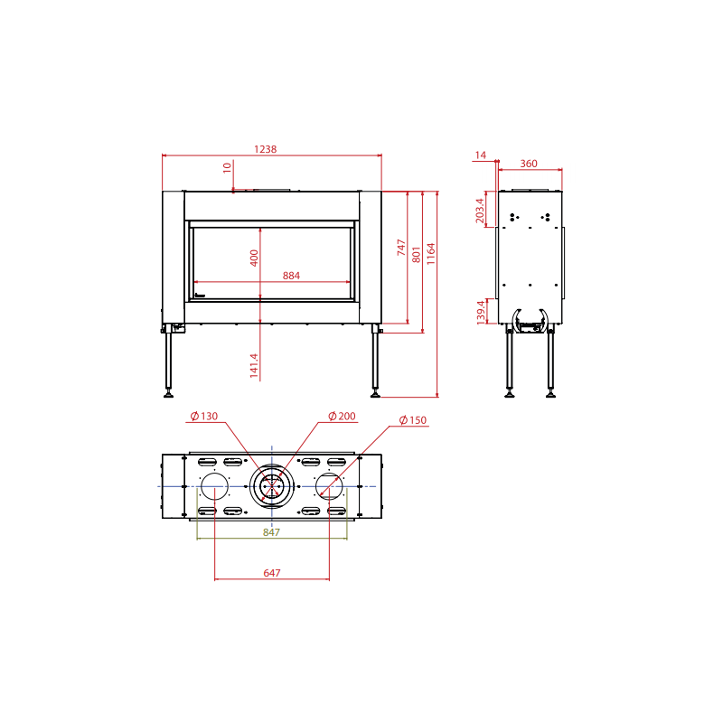| Židinio aukštis (bendras), mm | 1164 |