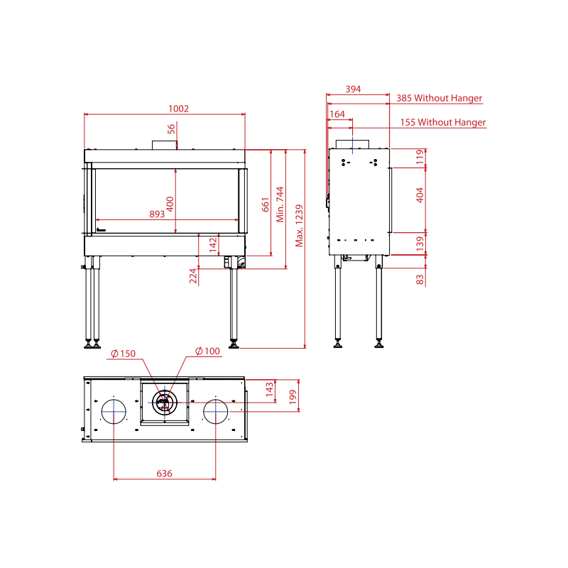 | Židinio plotis (ilgis), mm | 1002 |
