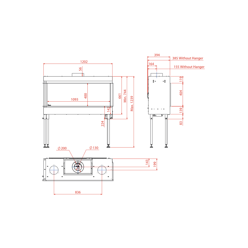 Dujinis židinys Akos Uranus L, į kaminą jungiamas 130/200 mm skersmens dūmtraukiu. Vidiniu dūmtraukio skersmeniu degimo produktai šalinami , o išoriniu - tiekiamas oras degimui palaikyti, todėl židinio patalpoje esantis oras išlieka šviežias. Suteikiama 10 metų garantija degikliui.