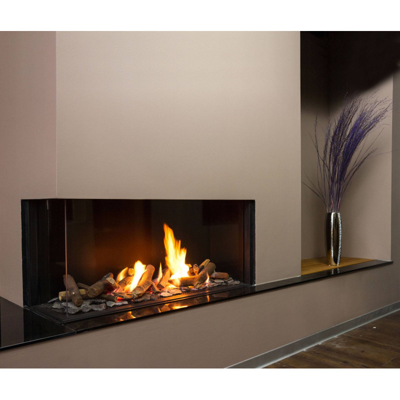 Dujinys židinys Akos NV120H F2L, 10 kW, aukštu kairės pusės kampiniu stiklu. Židinys su pakopiniu degikliu - pirmosios pakopos galia iki 5 kW, antroji - padidina galią iki 10 kW. Įrenginio galingumas valdomas valdikliu Metric GV-60. Valdymo pultelyje nustatoma pageidaujama kambario temperatūra. Komplekte yra kojelės ir tvirtinimai montavimui ant sienos, todėl židinys Akos NV120H F2L gali būti statomas ant pagrindo arba montuojamas ant sienos. Įrenginys gali būti su gamtinių arba suskystintų dujų degikliu (užsakymo metu reikia nurodyti naudojamų dujų tipą). Į židinio kainą įskaičiuota: pakopinis degiklis, valdymo pultas, židinio stiklas, pakuros dekoracijos - malkos arba akmenukai (pilkos/baltos spalvos).