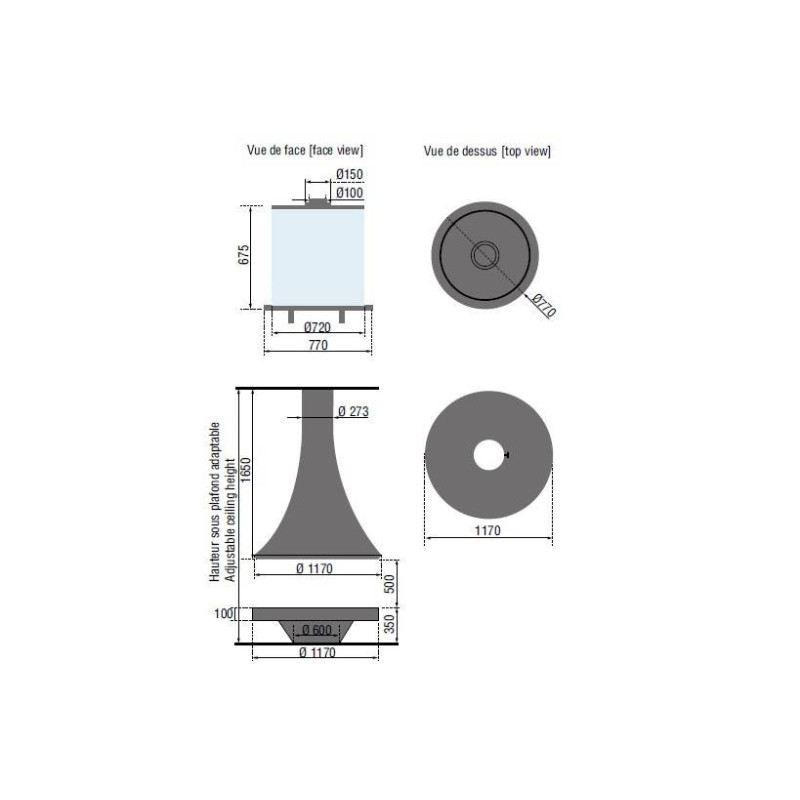 - Dūmtraukio diametras - 100 mm