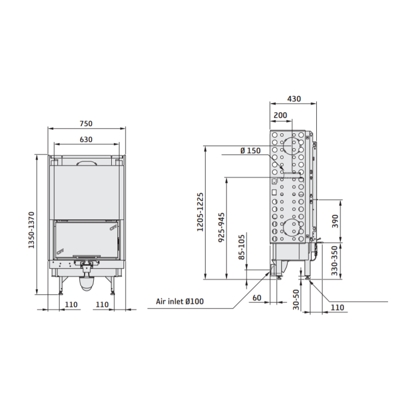 | Židinio aukštis (bendras), mm | 1650 |