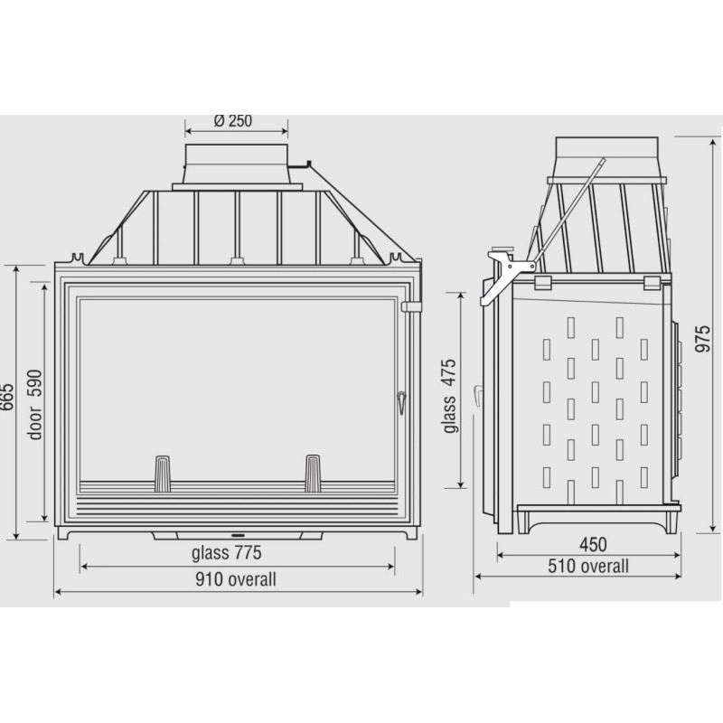| Židinio plotis (ilgis), mm | 910 |
