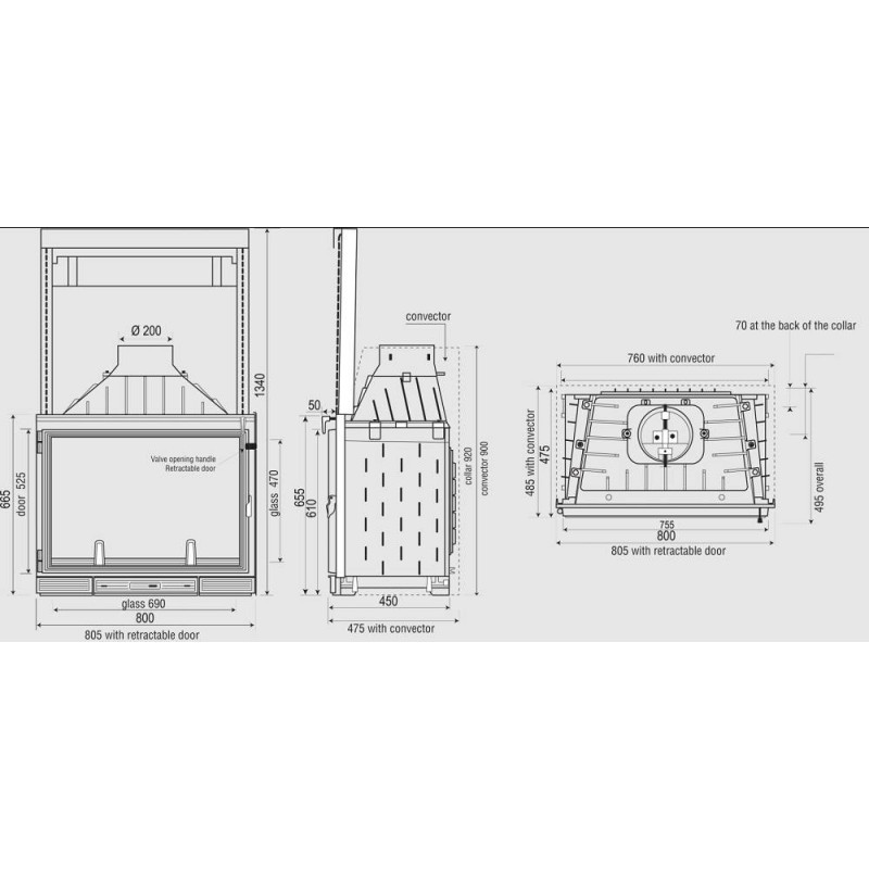 | Židinio aukštis (bendras), mm | 1340 |