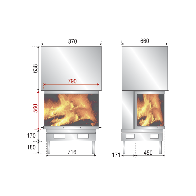 Plieninis židinio ugniakuras Axis F900 su šamotu, todėl šildymas tampa dar efektyvesnis, o didelis trijų dalių stiklas leis matyti ugnį įvairiu kampu. Ugniakurą labai lengva įkomponuoti ir priderinti prie interjero. Ugniakuras išsiskiria aukšta kokybe, o laikiklis malkoms taip pat pagamintas iš aukštos kokybės ketaus liejinio. Ugniakuro Axis F900 degimo kamera išklota šamotu, dėl to jis pasižymi aukštesne degimo temperatūra, švariu stiklu bei mažesniu anglies dvideginio išmetimu į aplinką. Taip pat, ilgiau akumuliuojama šiluma į aplinką baigus degti kurui. Ugniakure Axis F900 automatiškai reguliuojamas oro tiekimas degimui, keliant dureles. Sklendės, skirtos reguliuoti traukai, valdymo rankena sumontuota dešinėje pusėje. Kolektorius viršuje turi keturis Ø 125 mm išvadus ortakių prijungimui. Suteikiama 5 metų garantija korpusui.
