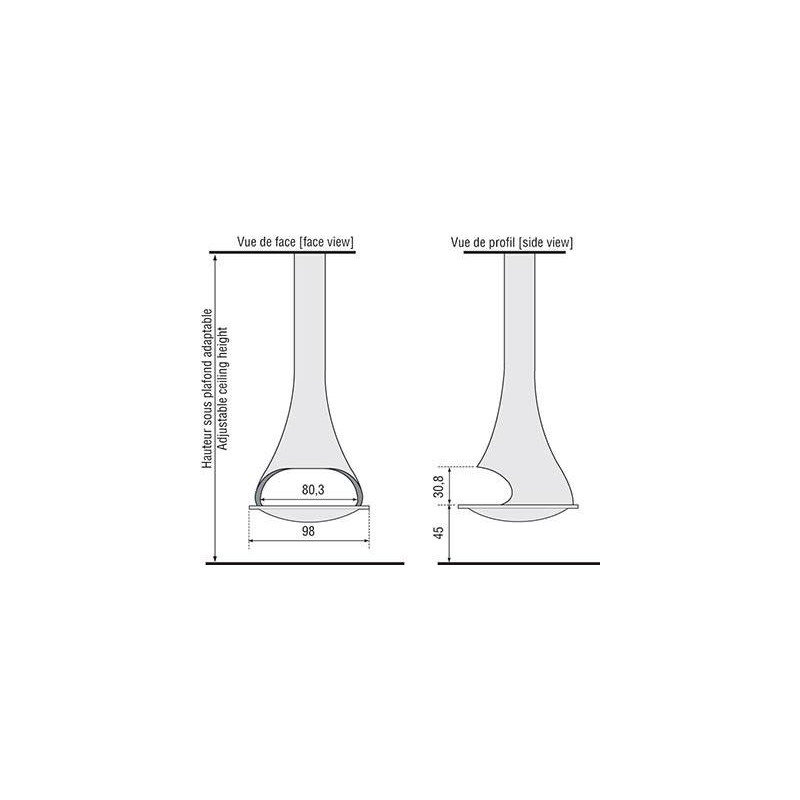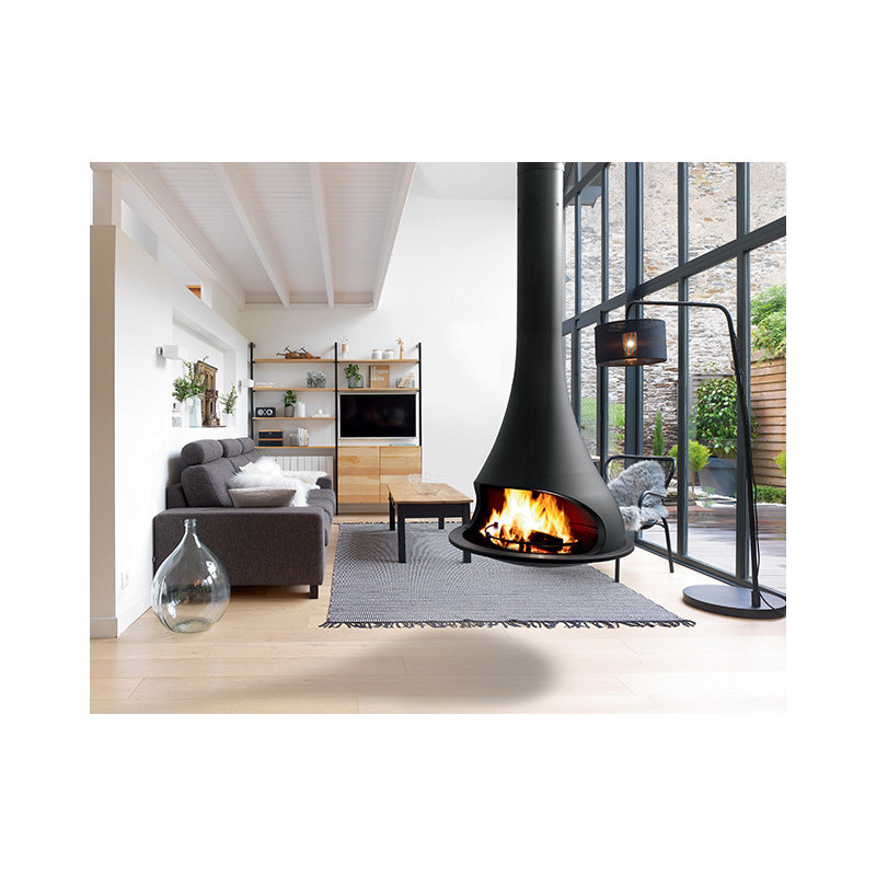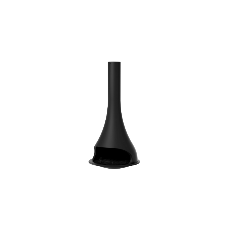 Plieninis židinys, Antracito spalvos, Montuojamas patalpos viduryje, Tvirtinamas prie lubų, Be stiklo, Apsauginis žiedas apsaugantis nuo malkų iškritimo, Matmenys(PxAxG) 980x2500x754 mm, 5 metų garantija korpusui
