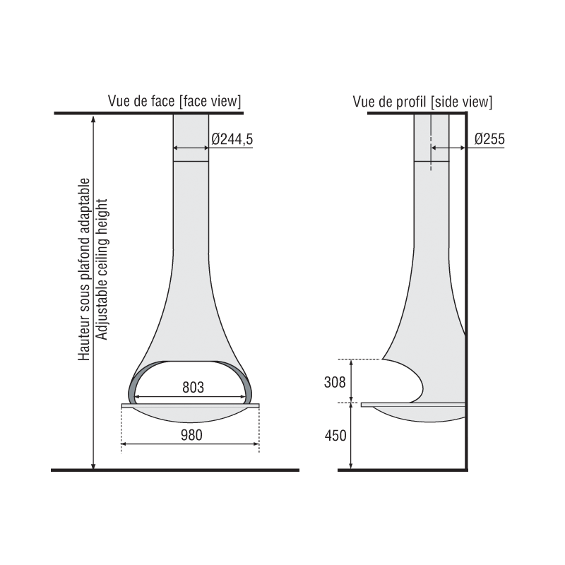 Plieninis židinys, Antracito spalvos, Montuojamas ant sienos, Be stiklo, Apsauginis žiedas apsaugantis nuo malkų iškritimo, Matmenys(PxAxG) 980x2500x745 mm, 5 metų garantija korpusui